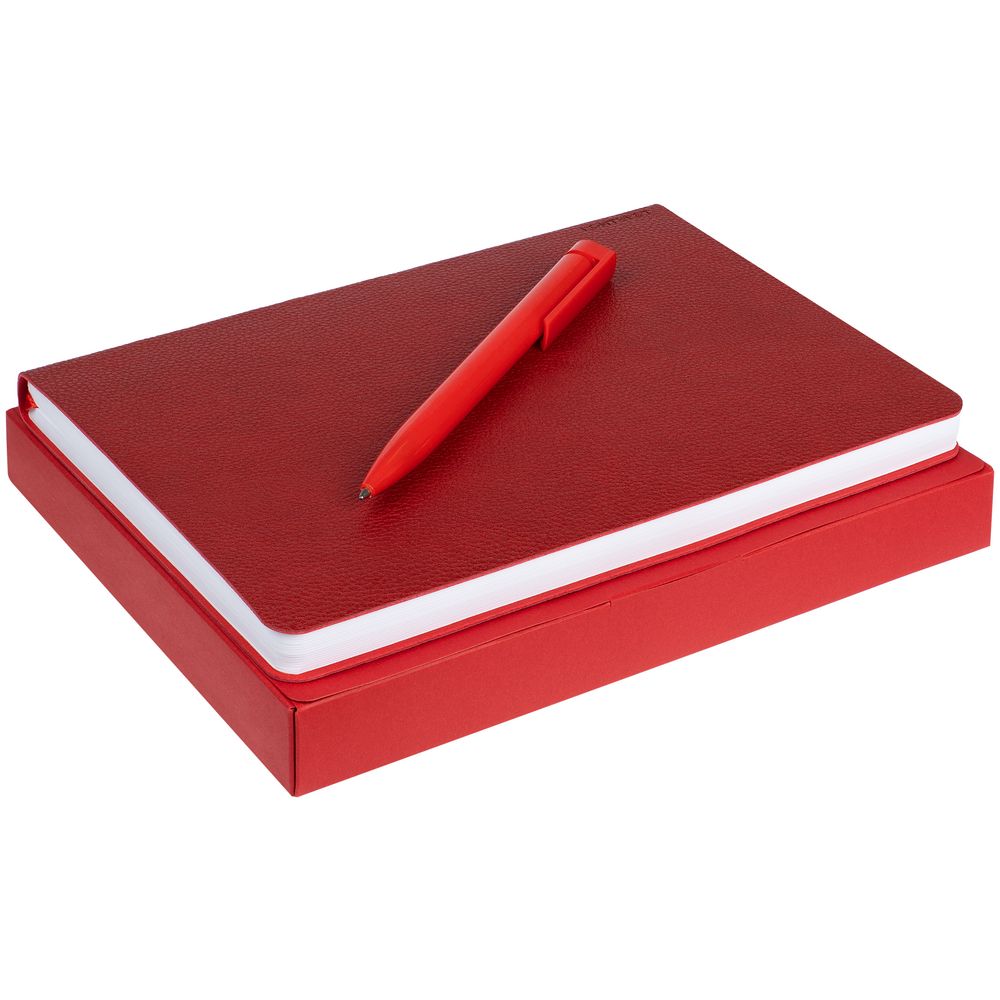 Недатированный ежедневник с гибкой обложкой из фактурного материала La Fite и металлическим шильдом на ляссе и ручка в тон, упакованные в подарочную коробку из дизайнерского картона. -