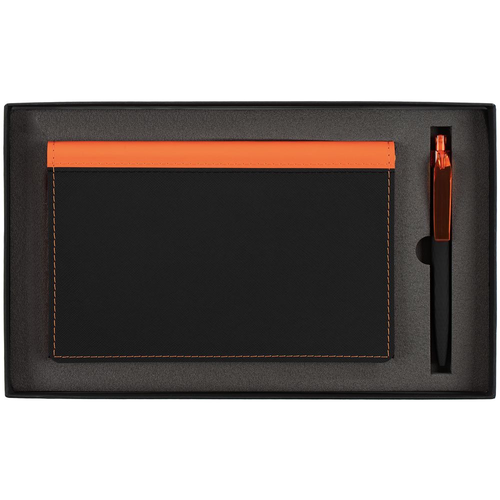Стильный двухцветный ежедневник с гибкой обложкой и цветным обрезом, а также ручка в тон. -