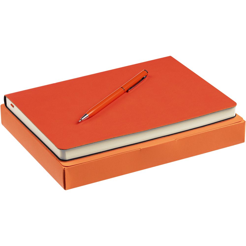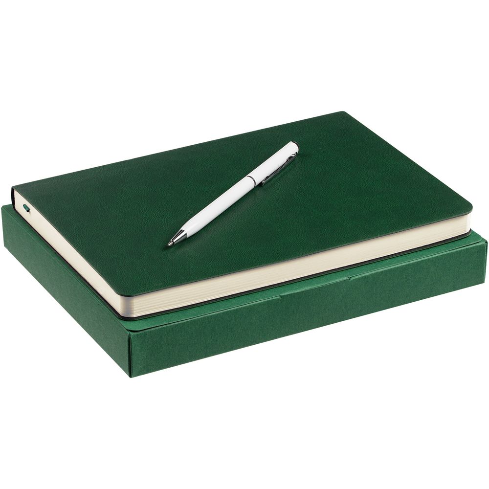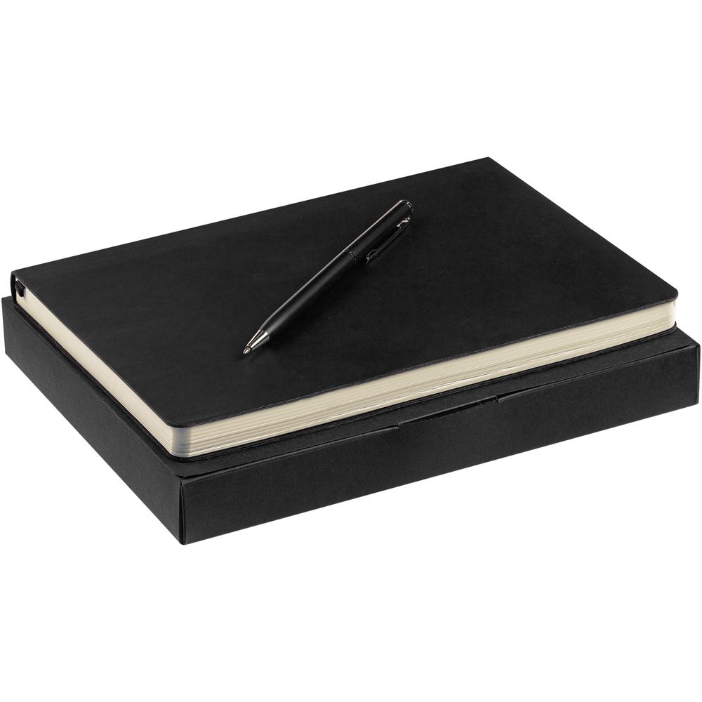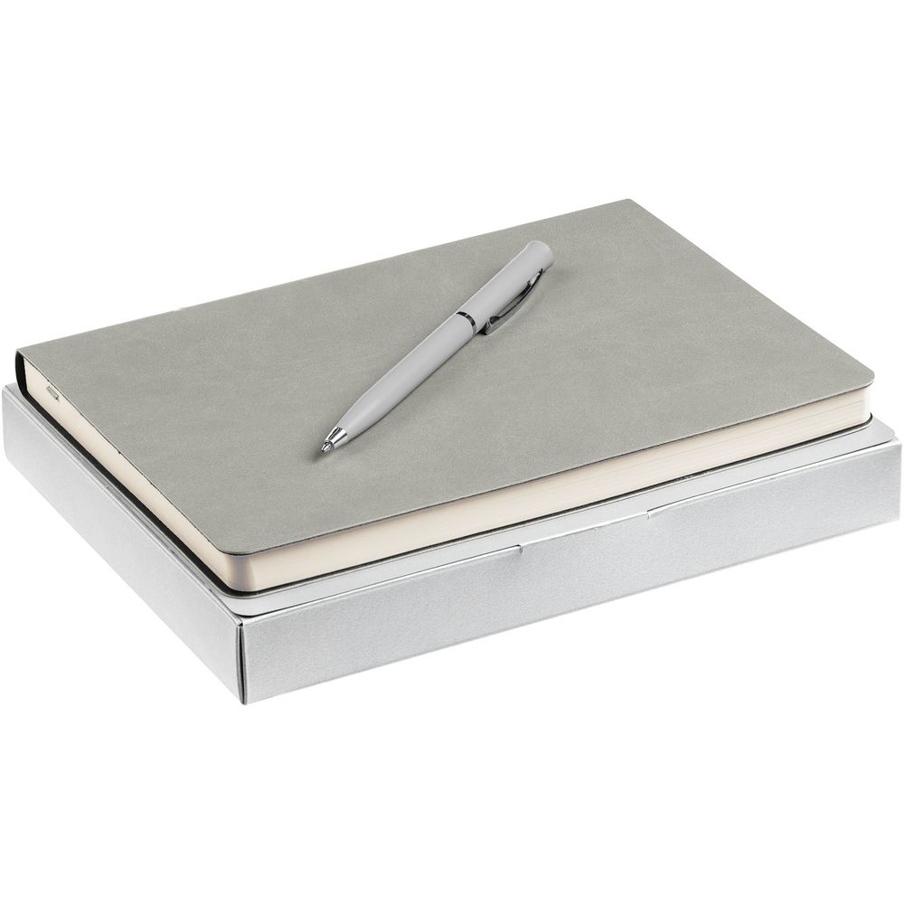Недатированный ежедневник с гибкой обложкой из материала Latte с ляссе в цвет обложки, а также ручка в тон — в подарочной коробке из дизайнерского картона. -