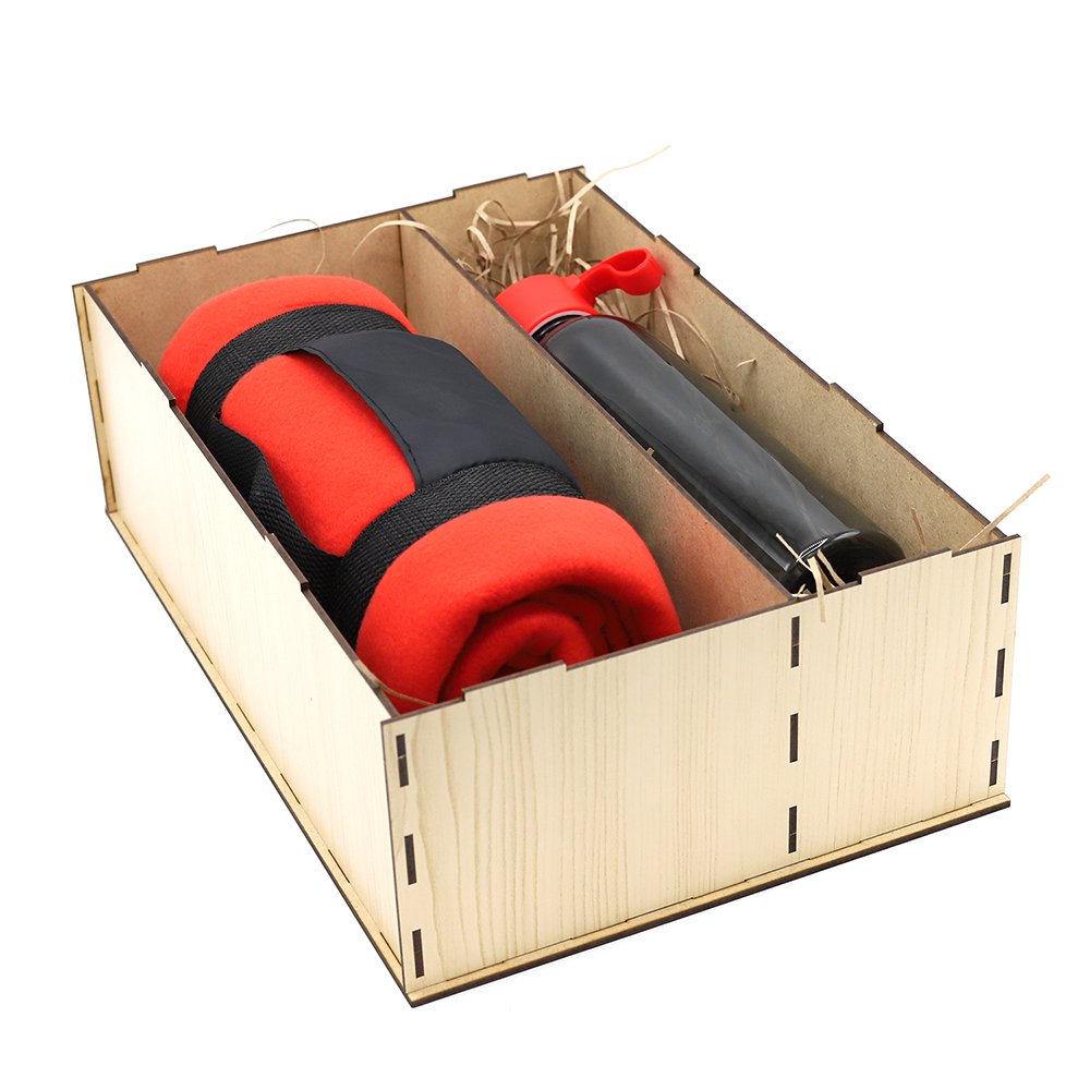 Очень изящный подарочный набор, гармонично сочетающий в себе традиции и современные тенденции! Упаковка из древесноволокнистной плиты высокой плотности (ХДФ/HDF) обеспечивает удобство погрузки и разгрузки, сохранность в пути. Состав набора: Упаковка из древесноволокнистной плиты (2 отделения) (Артикул: 53054) - 1 шт. Пластиковая бутылка Rama - 1 шт. (Артикул: 14014.05) Плед Арго- 1 шт. (Артикул: 16000.05) Наполнитель - стружка бумажная, бежевый – 1 шт. (Артикул: 62000.13)- Виды нанесений: Гравировка CO2-А1, УФ-печать, Круговая УФ-печать, Термотрансфер DTF
