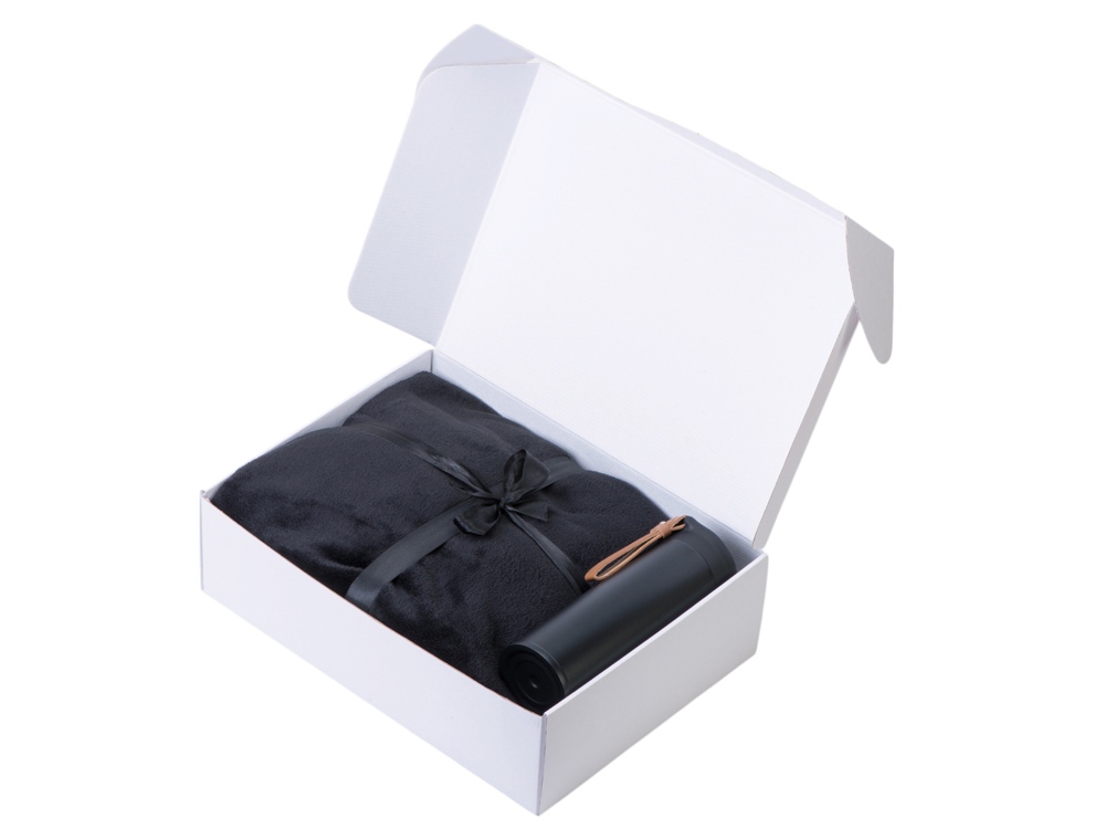 коробка - картон, плед - флис из 100% полиэстера, термос - нержавеющая сталь, soft-touch