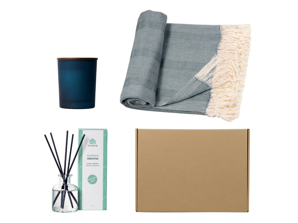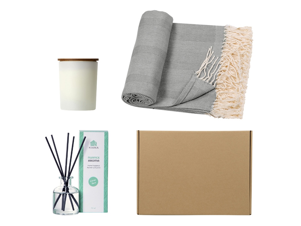 Подарочный набор для дома с пледом, свечой и диффузором