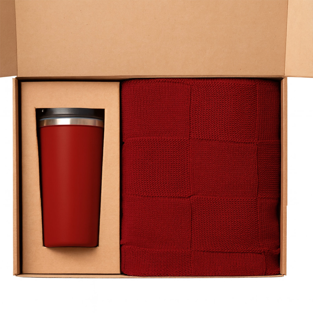 Подарочный набор Palermo, Cella, красный (плед, термокружка)