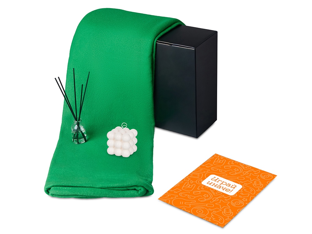 плед - флис, полиэстер, диффузор - стекло, свеча - 90% парафин очищенный, 10% соевого воска, фитиль хлопковый, миндаль - пластик, мешок - нетканый материал (спанбонд), коробка - картон