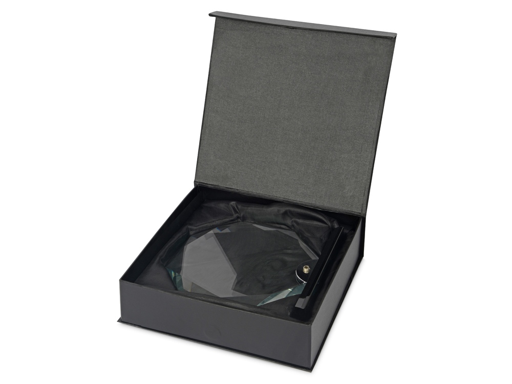 Прекрасный сувенир для вручения коллегам и партнерам за выдающиеся достижения. Оригинальная форма напоминает ограненный бриллиант. Основание выполнено из цветного стекла.