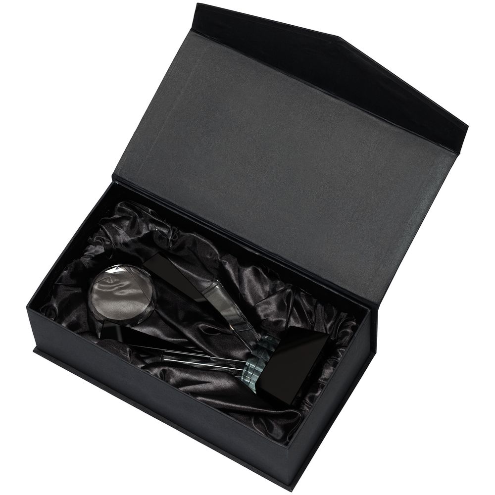 Стела изготовлена из стекла К9, в основе которого лежит оптическое боросиликатное стекло. Эту марку стекла отличает низкий процент посторонних включений, высокий показатель преломления и высокая прозрачность — идеальные качества для изготовления наград премиального уровня. -