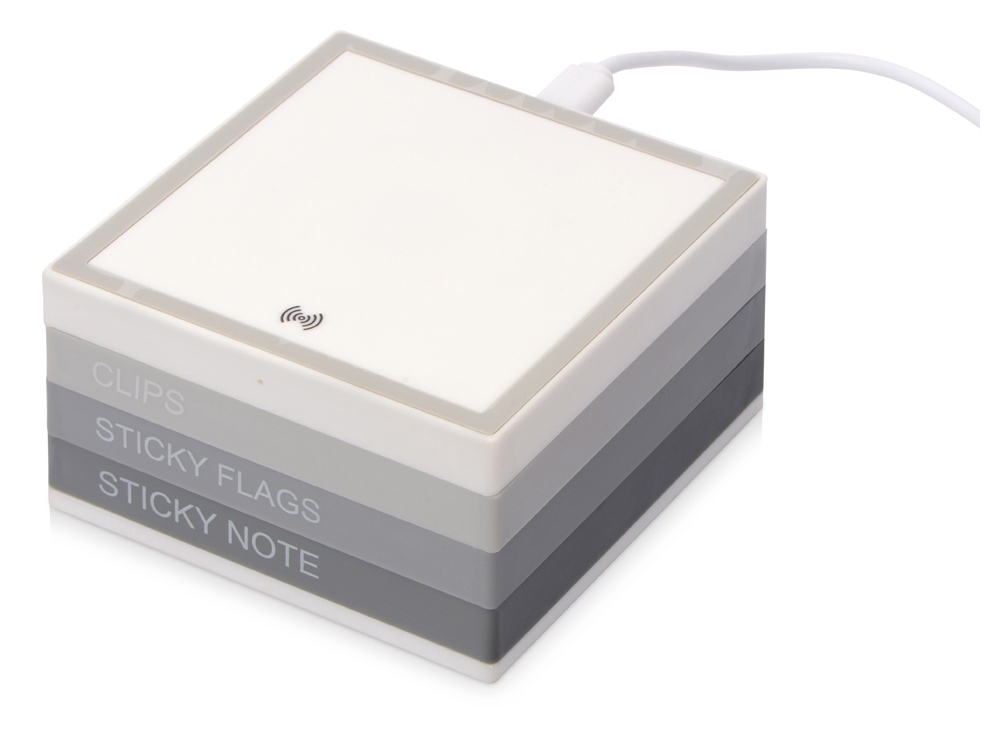 Органайзер Chaos с функцией беспроводной зарядки – современный бизнес-подарок, объединяющий в себе функциональность и современный подход к организации рабочего пространства. Три выдвигающиеся подставки уже содержат скрепки, самоклеящиеся стикеры и стикеры-закладки. Органайзер подходит для беспроводной зарядки и хранения смартфона, поддерживающего функцию беспроводной зарядки, и различных канцелярских аксессуаров. Работает от кабеля Micro-USB. В комплект входит кабель Micro-USB. -