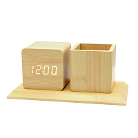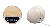 Настольные часы "Smiley" с беспроводным (10W) зарядным устройством и будильником, пшеница/бамбук/пластик