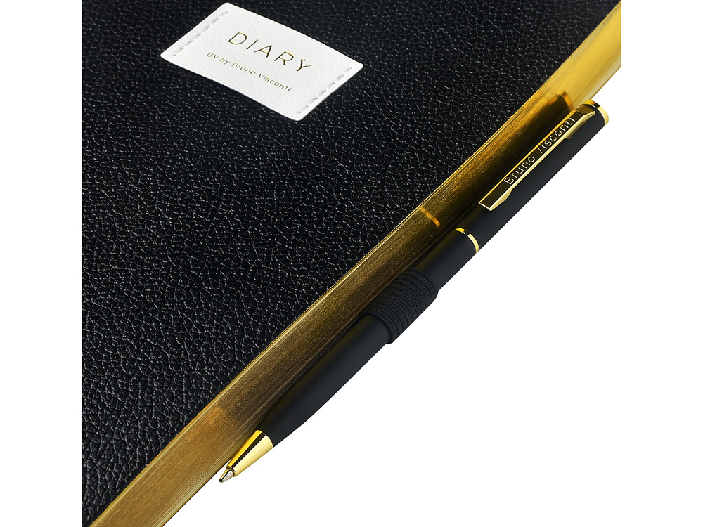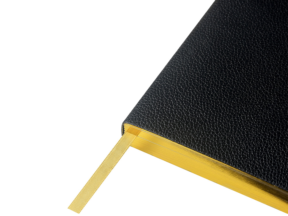 Внутри — недатированный блок формата А5 (125×200 мм) на бежевой бумаге 80 г/м². Книжный переплёт хорошо раскрывается, а скруглённые углы одновременно придают ежедневнику премиальный вид и защищают края при носке. Завершают детали ляссе в цвет обложки и петля для ручки — чтобы всё нужное было под рукой.