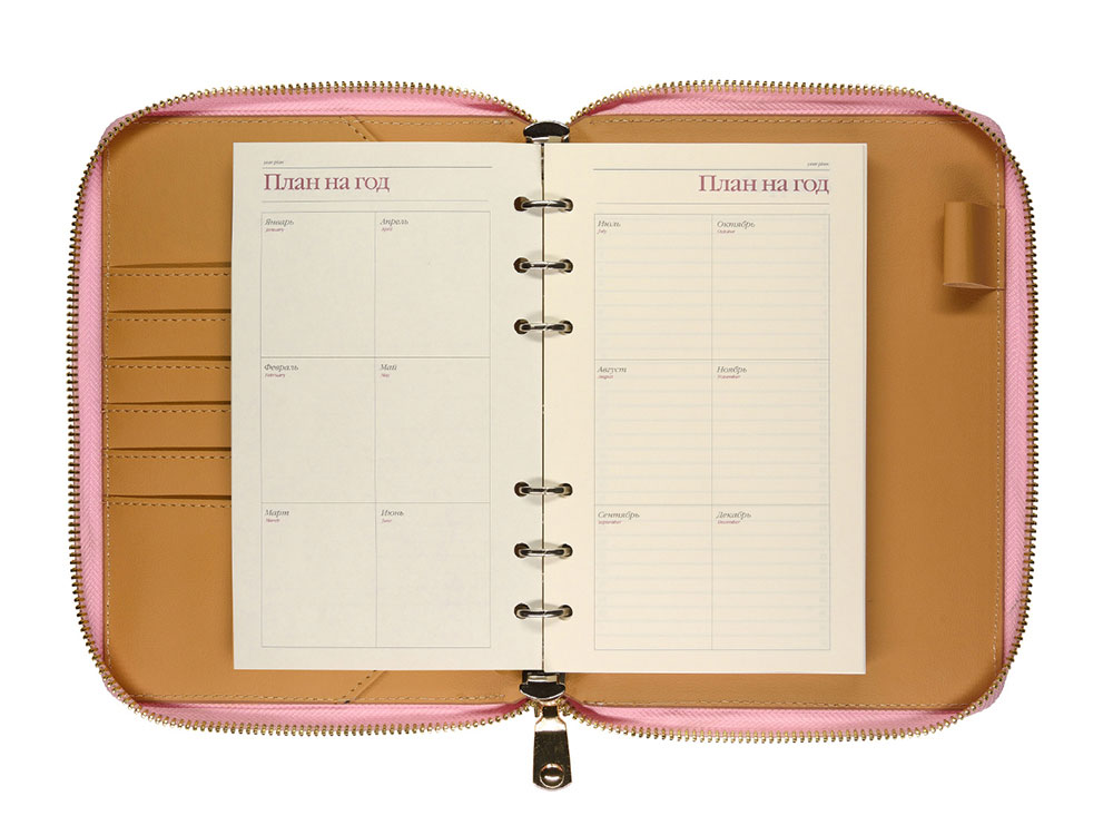 Деловая нежность! Вот как можно охарактеризовать этот очаровательный розово-зефирный ежедневник. Большое отделение на молнии вмещает в себя и сменный блок для записей на кольцевом механизме, и отделения для визиток и ручки. В этом бизнес-аксессуаре поместятся и дополнительные документы и смартфон. -