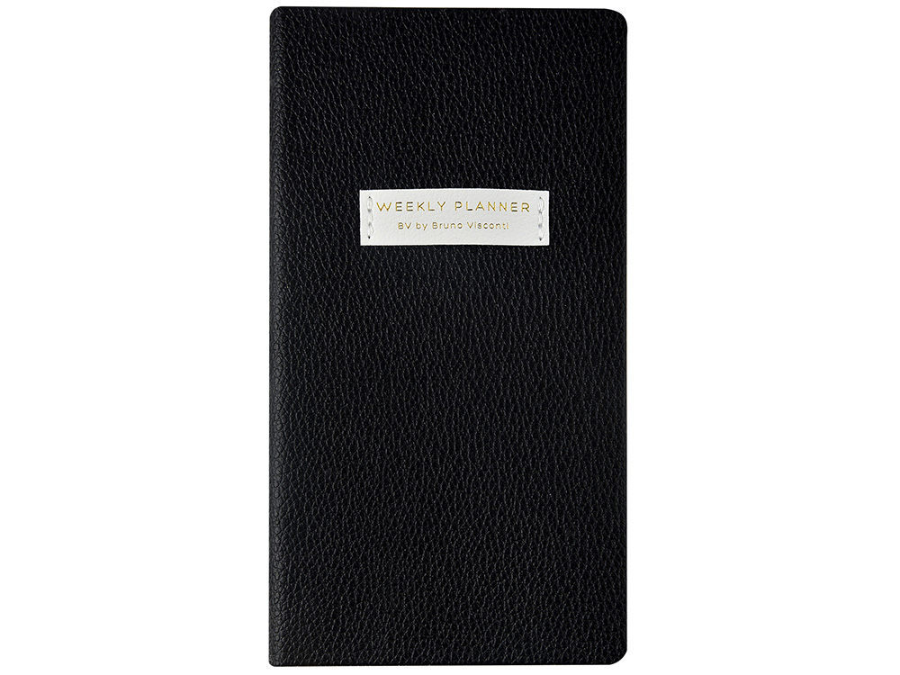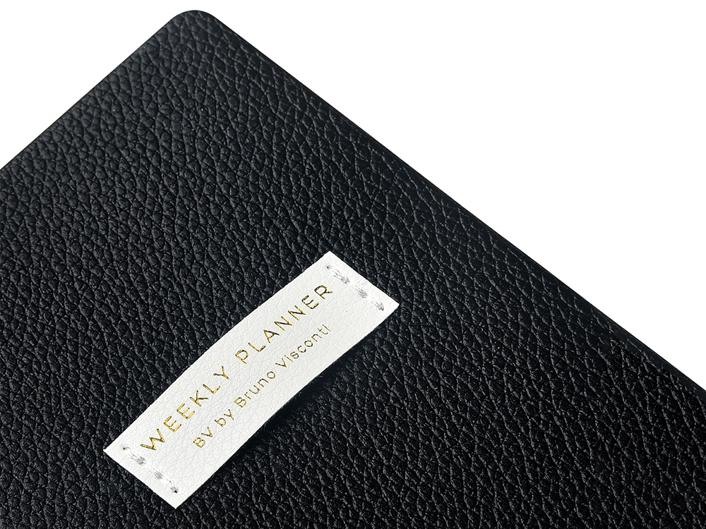 Внутри — недатированный блок формата А6 (84×160 мм) на бежевой бумаге 80 г/м². Книжный переплёт хорошо раскрывается, а скруглённые углы одновременно придают еженедельнику премиальный вид и защищают края при носке. Ляссе‑закладка выполнена в цвет обложки и помогает быстро находить нужную страницу. -
