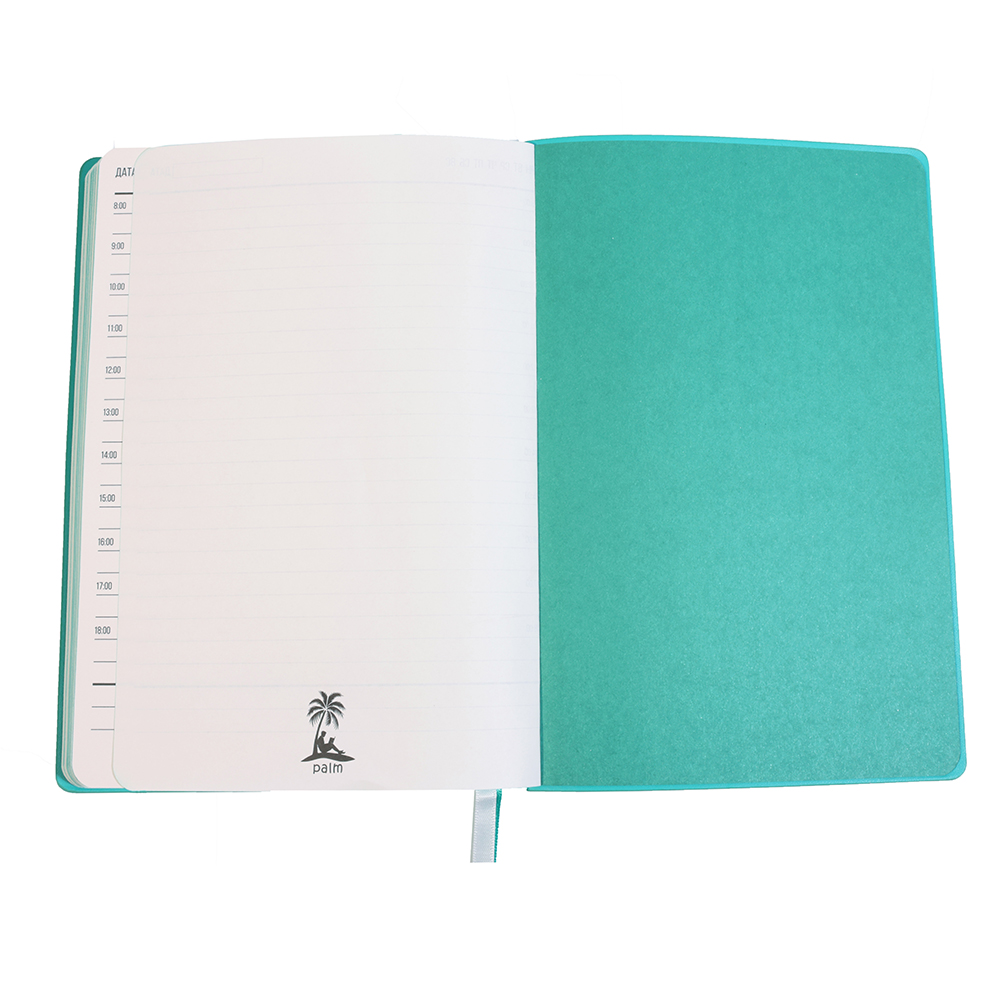 Высококачественный ежедневник Gabby в мягкой и приятной на ощупь обложке. Идеален для подарка! Удобный и стильный: закругленные углы, прокрашен в цвет ежедневника край, форзац и нахзац, а также одна из двух лент-закладок, вторая белая. Титульные листы — индивидуальные. Бумага в блоке — цвета слоновая кость. В начале ежедневника страничка с личными данными. Индивидуальная упаковка в термоусадочную пленку.Только вы, ваши мысли и PALM™. Блок внутренних страниц в линейку. Количество листов - 128.- Виды нанесений: УФ-печать А2, Тиснение, Тиснение фольгой, УФ-Лак, УФ-Цвет+Лак