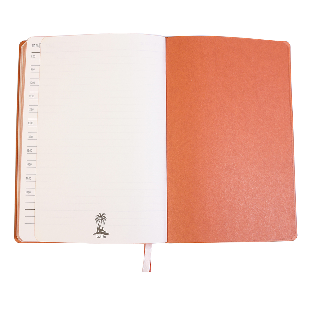 Высококачественный ежедневник Gabby в мягкой и приятной на ощупь обложке. Идеален для подарка! Удобный и стильный: закругленные углы, прокрашен в цвет ежедневника край, форзац и нахзац, а также одна из двух лент-закладок, вторая белая. Титульные листы — индивидуальные. Бумага в блоке — цвета слоновая кость. В начале ежедневника страничка с личными данными. Индивидуальная упаковка в термоусадочную пленку.Только вы, ваши мысли и PALM™. Блок внутренних страниц в линейку. Количество листов - 128.- Виды нанесений: УФ-печать А2, Тиснение, Тиснение фольгой, УФ-Лак, УФ-Цвет+Лак