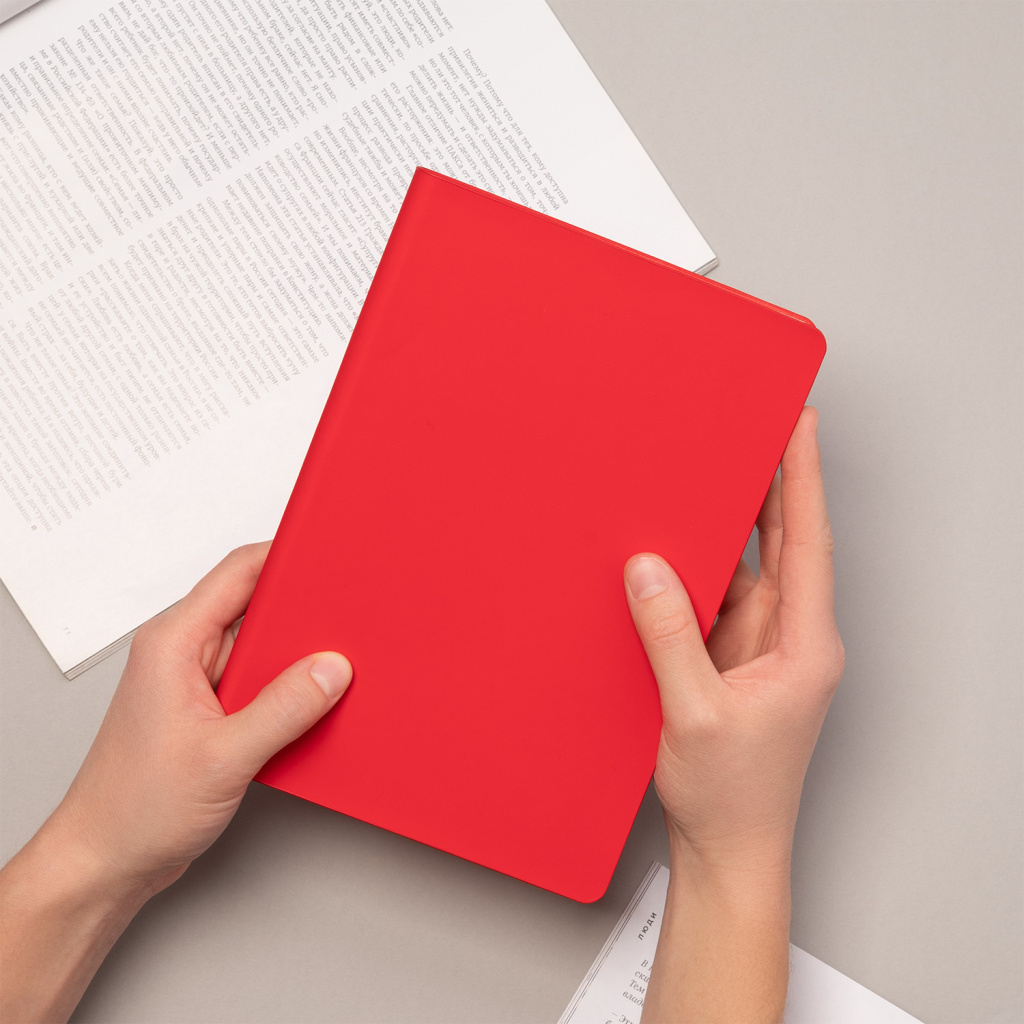 Матовое покрытие Soft Touch с деликатным пудровым эффектом подарит неповторимое тактильное удовольствие. А кремовые форзац, нахзац и срез блока создадут гармоничное обрамление для гладких шелковистых страниц кремового оттенка. Элегантное атласное ляссе поможет вам легко ориентироваться в записях.