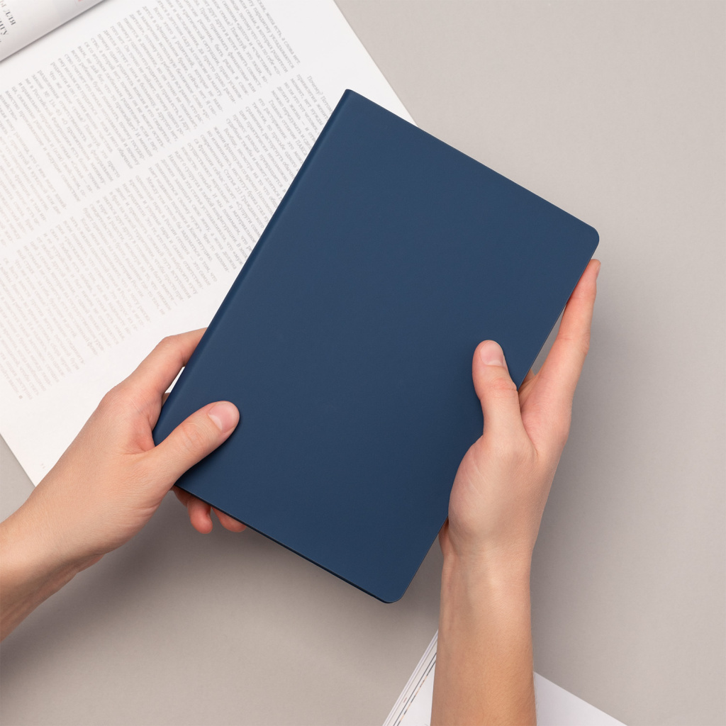 Матовое покрытие Soft Touch с деликатным пудровым эффектом подарит неповторимое тактильное удовольствие. А кремовые форзац, нахзац и срез блока создадут гармоничное обрамление для гладких шелковистых страниц кремового оттенка. Элегантное атласное ляссе поможет вам легко ориентироваться в записях.