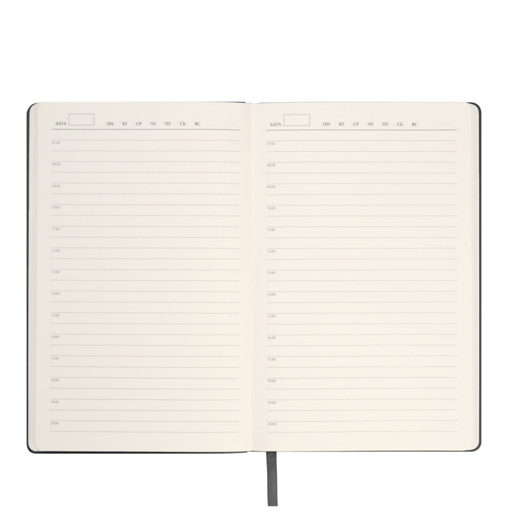 Кремовые форзацы и гладкие шелковистые страницы из офсета со скругленными уголками обеспечат максимальный комфорт при письме. Элегантное атласное ляссе поможет быстро найти нужную страницу. Этот ежедневник — воплощение изысканной простоты и практичности.