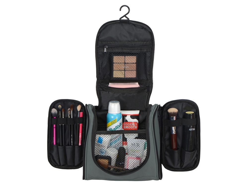 • Снабжен ручкой для удобства переноски и крючком, позволяющим подвесить несессер в ванной комнате гостиничного номера или любом другом месте -