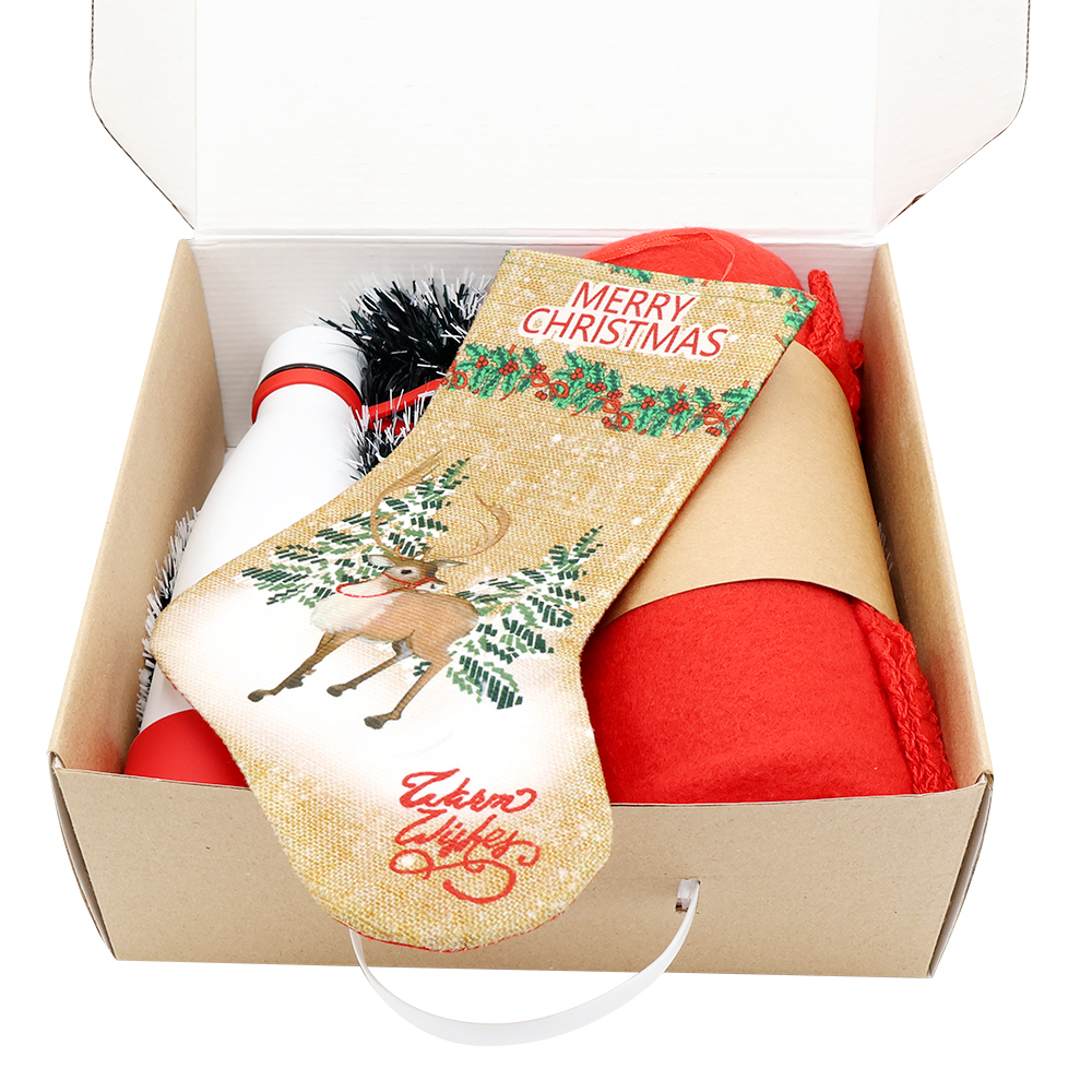 Этот подарочный набор подарит тепло и уют в холодное время года, создавая атмосферу праздника и комфорта. Идеальное сочетание практичности и праздничного настроения. Состав набора: Подарочная коробка из МГК (с ручкой) - артикул 53305 Плед PATIO, синий - артикул 16008.05 Вакуумная термобутылка Olivia, белый - артикул 5050.01, кольцо-держатель - красный; манжета - красный Новогодняя мишура - зелено-белый - артикул SYMTA-162079 Сапожок подарочный новогодний №5 — олень бежевый - артикул SYWZ-082008- Цвет: Красный