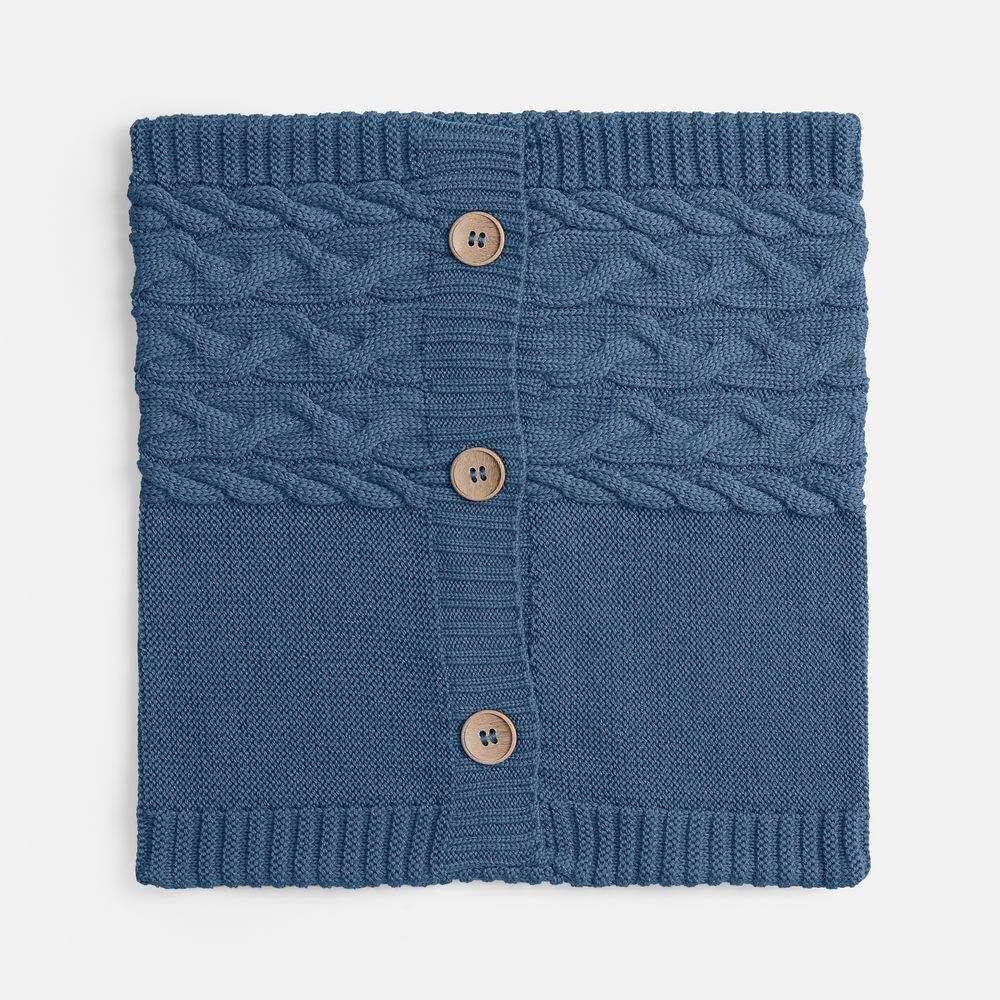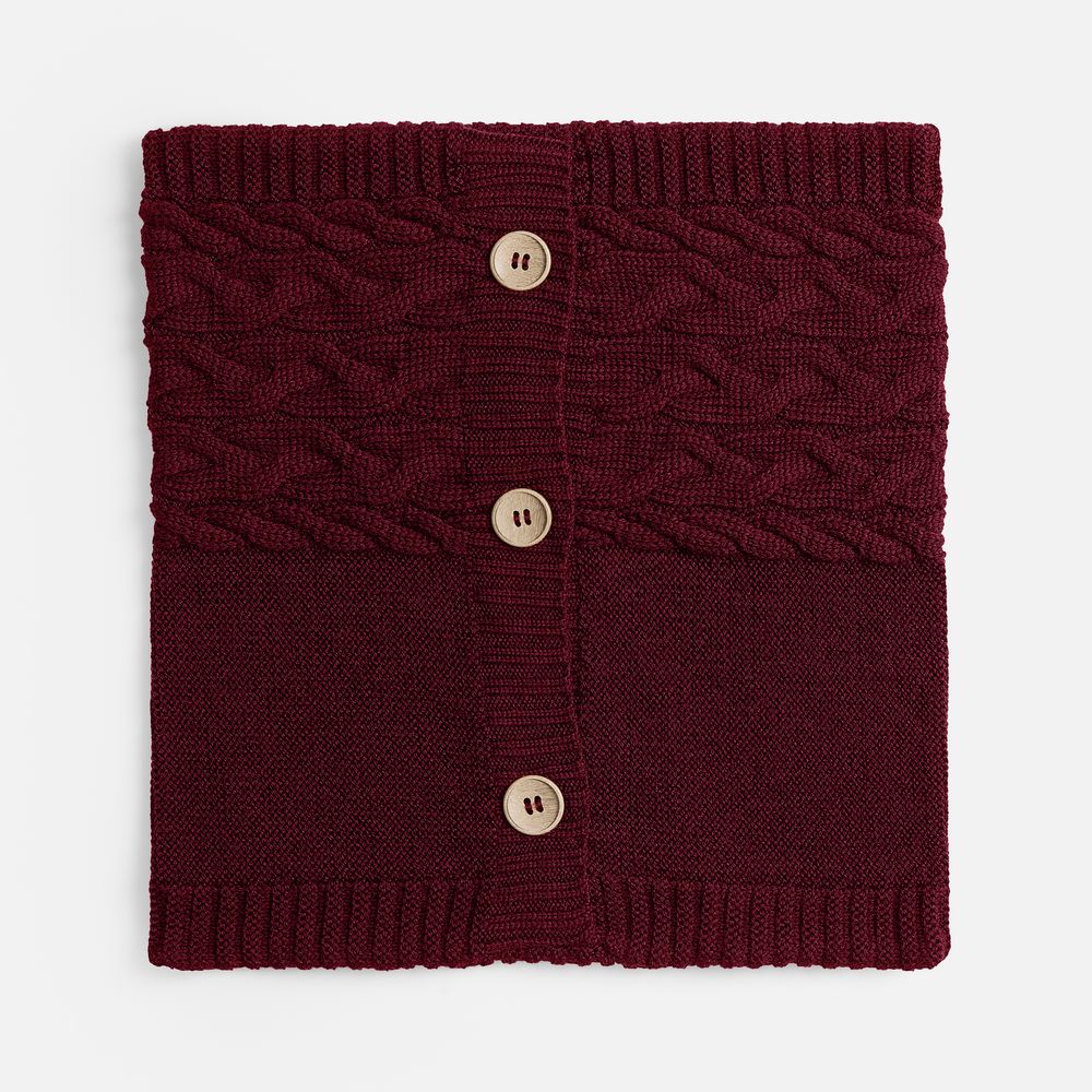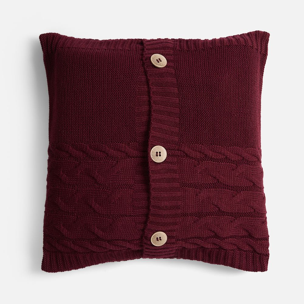 Вязаный чехол надевается на подушку из спанбонда, наполнитель — синтепон. Чехол крепится на три пуговицы.Отправляя запрос, укажите в поле «Примечание» формы заказа следующие данные.