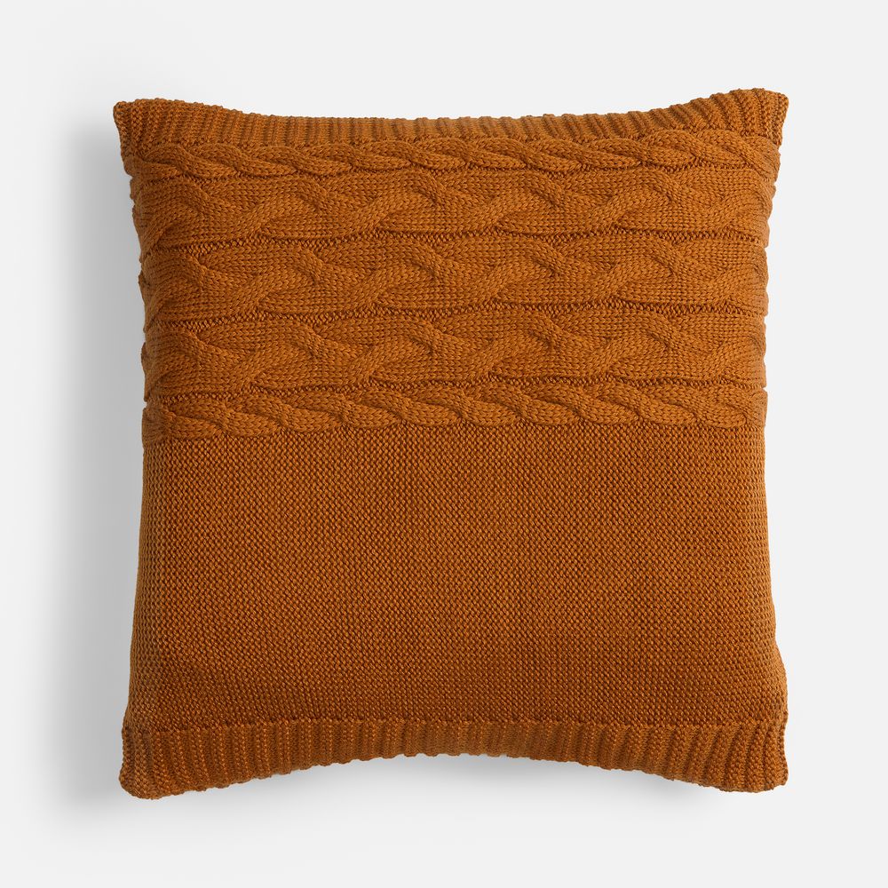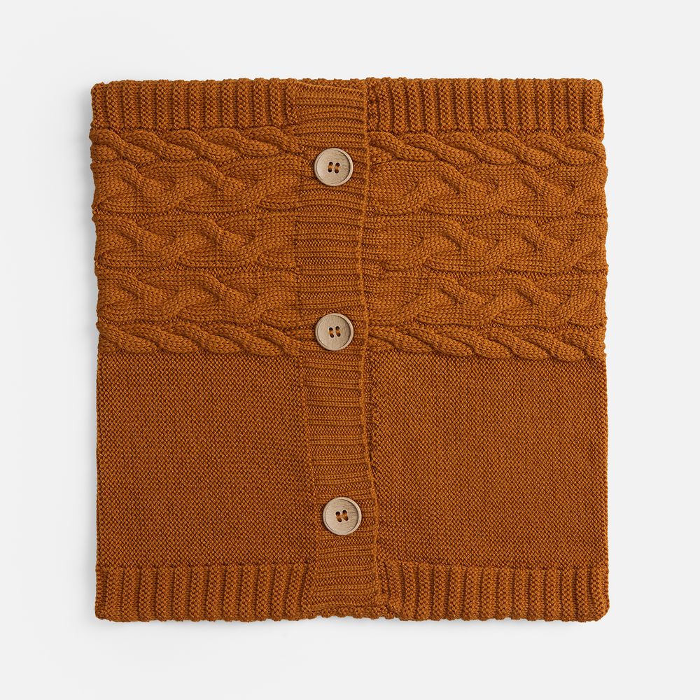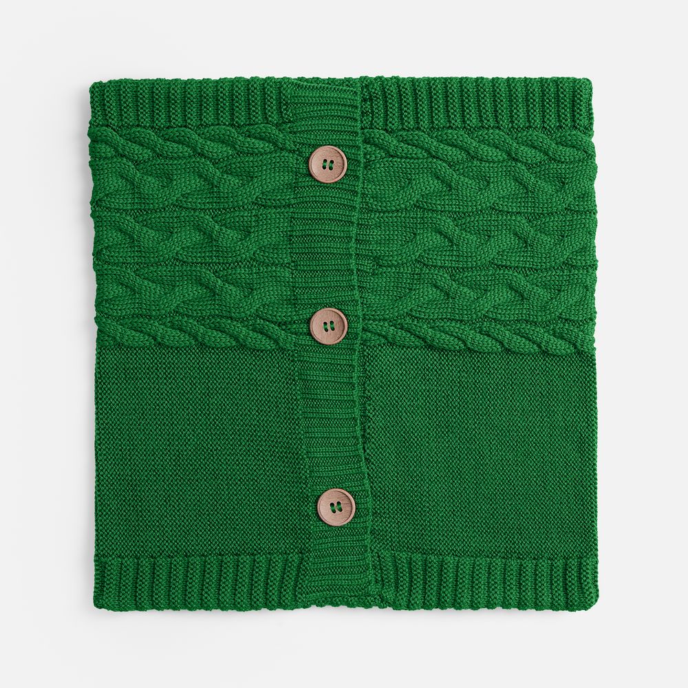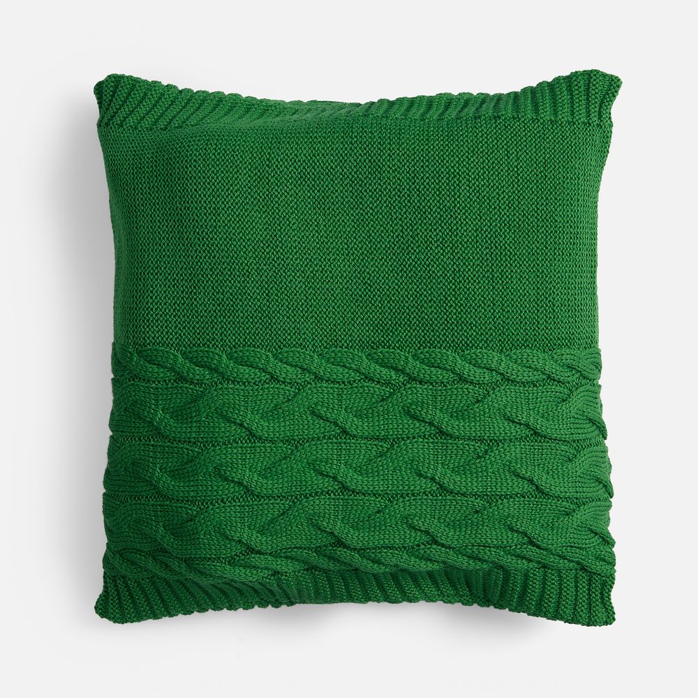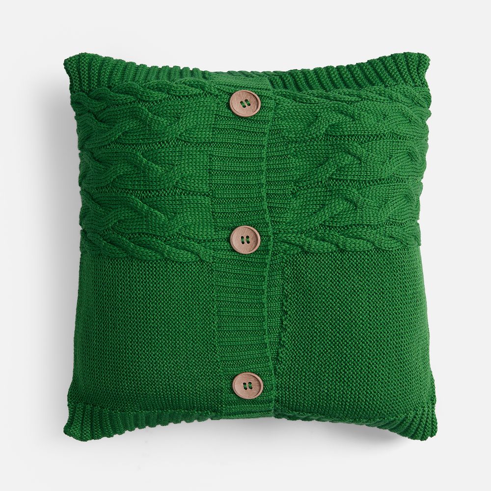 Вязаный чехол надевается на подушку из спанбонда, наполнитель — синтепон. Чехол крепится на три пуговицы.Отправляя запрос, укажите в поле «Примечание» формы заказа следующие данные.