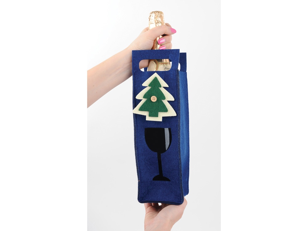 Без шампанского не обходится ни один новогодний стол, поэтому самым распространенным подарком сотрудникам фирмы является бутылка этого игристого напитка. Оформить такой подарок можно при помощи декоративного чехла с новогодней тематикой. Украшение в виде елки может крепиться в любое место чехла при помощи липучки. -