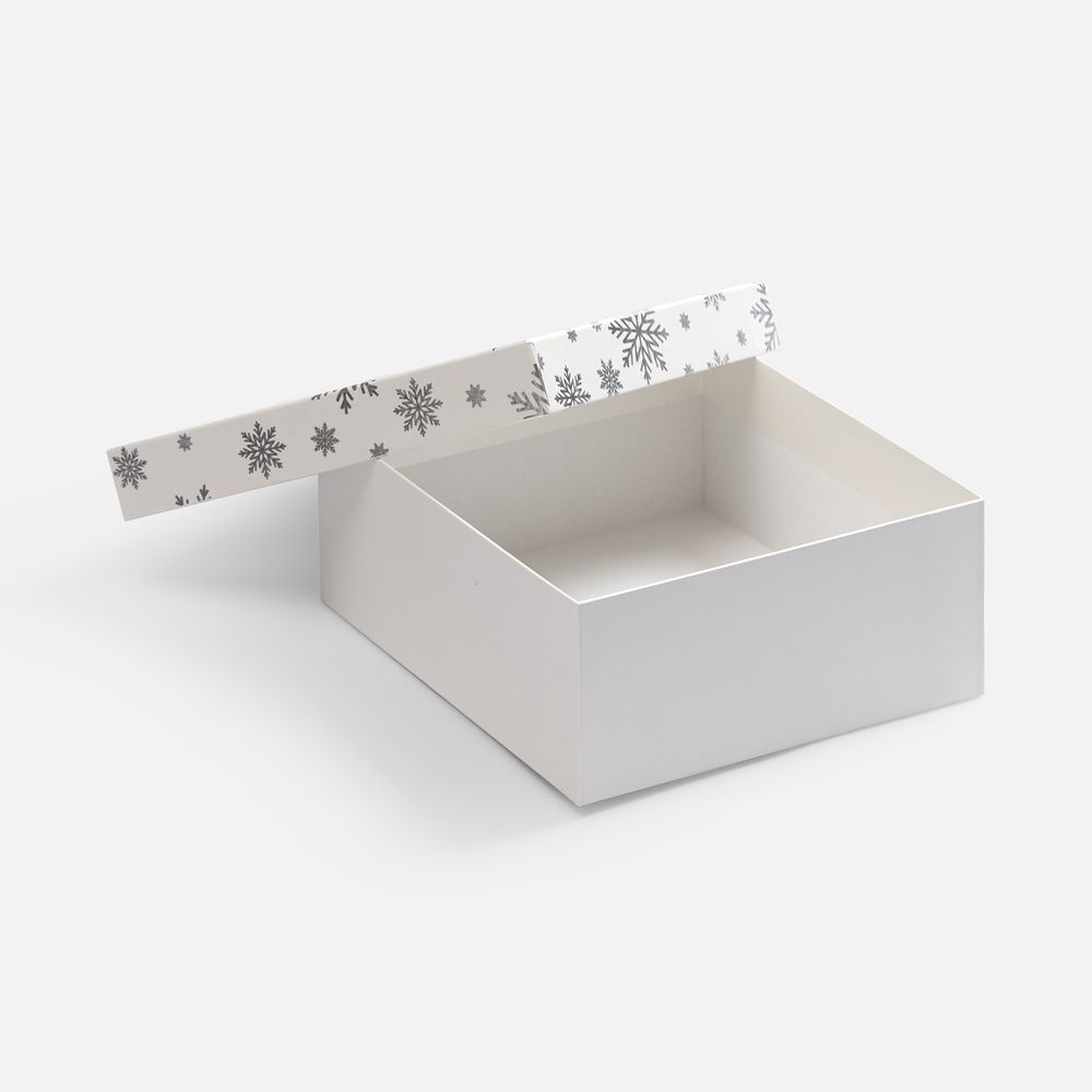 Коробка выполнена из переплетного картона толщиной 1,5 мм, кашированного бумагой TPG с тиснением серебристой фольгой. -