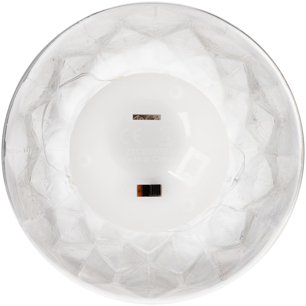Внутри миниатюрная гирлянда с 15 лампочками с теплым светом. Работает от 2 батареек типа CR2032 (в комплект не входят). -