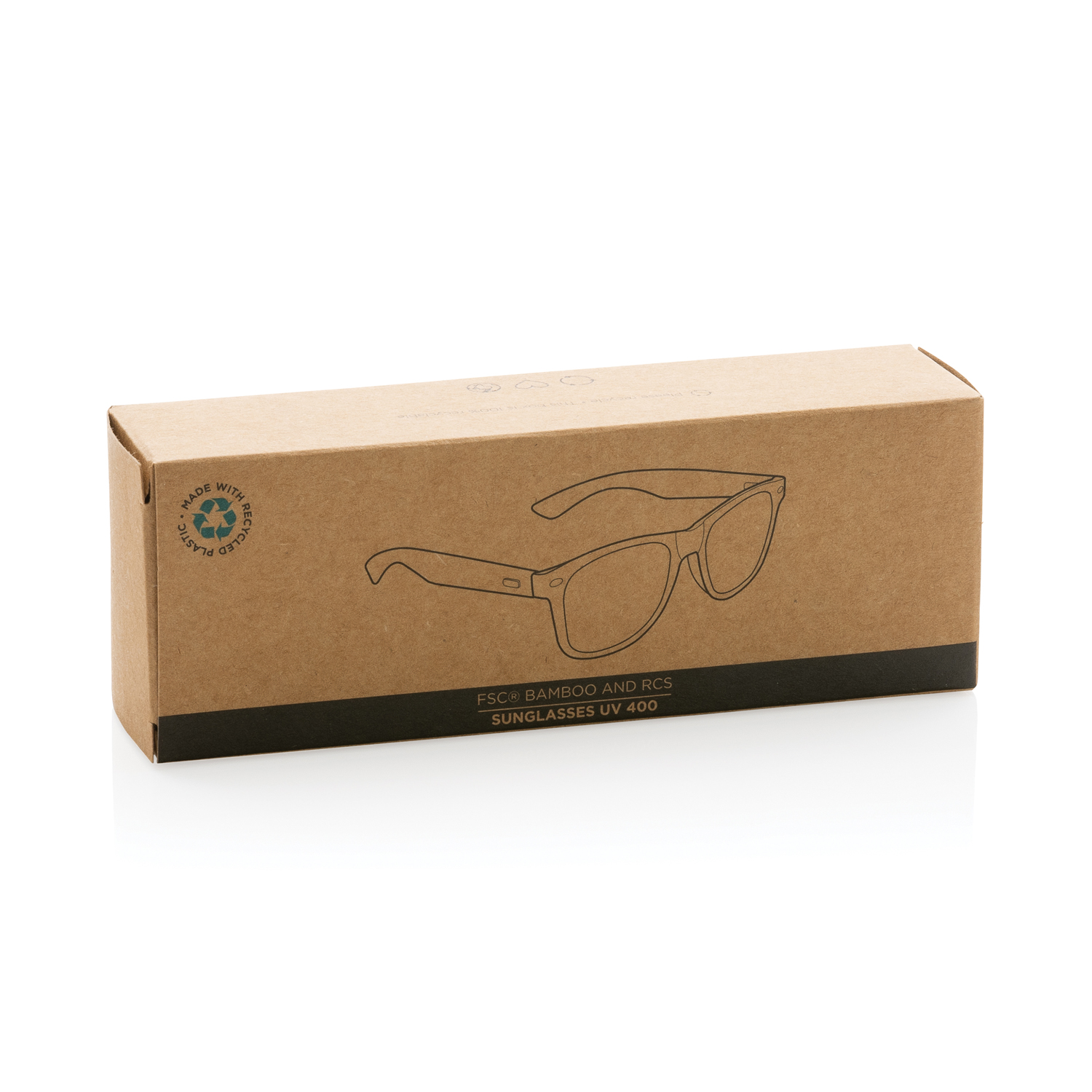 Стильные очки классической формы выполнены из экологичных материалов: переработанного пластика и бамбука FSC® (древесина, заготовленная без ущерба диким лесам). Сертификация RCS обеспечивает полный контроль цепочки поставок переработанных материалов. Содержание вторичного сырья: 41% от общего веса изделия. Линзы из акрила соответствуют требованиям EN ISO 12312-1, UV 400 и CAT 3. Поставляются в крафт-конверте FSC®.
