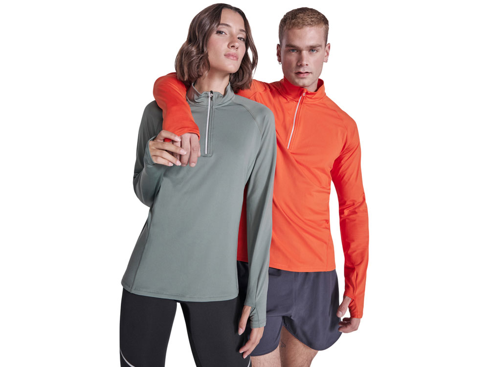 Лонгслив с рукавом реглан из технологического плотна, ворот на молнии со светоотражающей деталью. Усиленные швы. Манжеты с отверстием для большого пальца. Светоотражающая деталь на спинке. Низ спинки длиннее переда. Изнанка с теплым начесом.