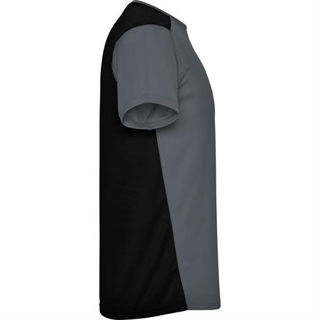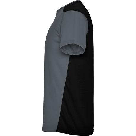 Спортивная футболка с короткими рукавами. 1. Круглая горловина. 2. Сочетание двух тканей с полиэстера на плечах и спине. 3. Основная ткань спереди — ткань bird's eye, и 3D-сетчатая дышащая ткань — сзади. 4. Ткань, подготовлена для впитывания влаги. 5. Д- Цвет: Эбеновый/Черный