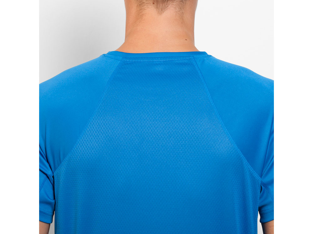 Спортивная футболка унисекс из технологичного полотна. Круглый вырез горловины укреплен со стороны спинки контрастной тесьмой. Спинка со вставкой из 3D сетки. Легко сохнущая дышащая модель -