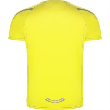 Спортивная футболка из одинарного трикотажа с короткими рукавами реглан. 1. Контрастные швы на манжетах рукавов, внизу, горловине и боках. 2. Горловина с окантовкой из той же ткани. 3. Дышащая ткань, легко стирается и быстро сохнет. 4. Светоотражающие де- Цвет: Флуоресцентный желтый
