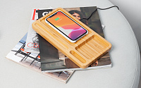 Настольный органайзер "Woodstock" с беспроводным зарядным устройством, бамбук