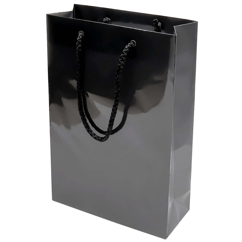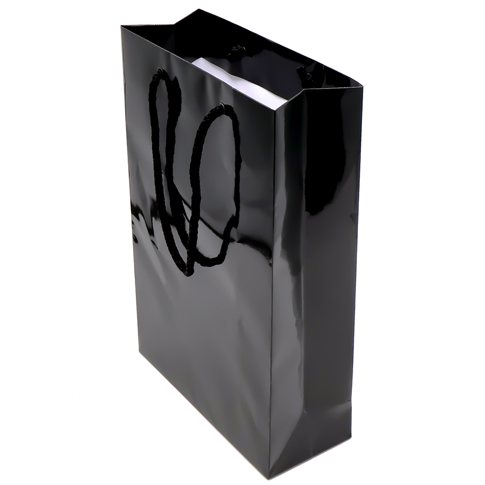 Бумажный пакет плотностью 170 г/м² с глянцевой ламинацией. Шнур 6 мм черного цвета. Люверс - черный.- Виды нанесений: Шелкография