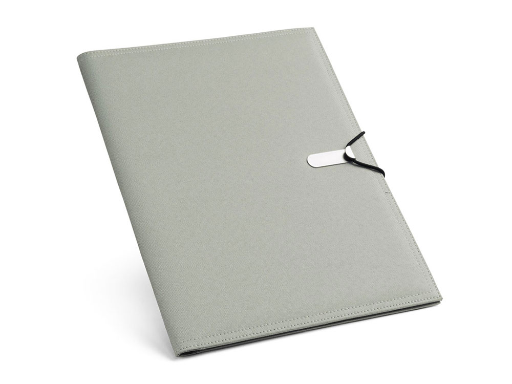 Папка A4 из 600D с застежкой на резинке. Папка имеет блокнот из 20 листов в линейку, 3 внутренних кармана и держатель для шариковой ручки (ручка не входит в комплект). 240 x 325 x 15 мм. Вид нанесения, рекомендуемый поставщиком: гравировка, трансфер.