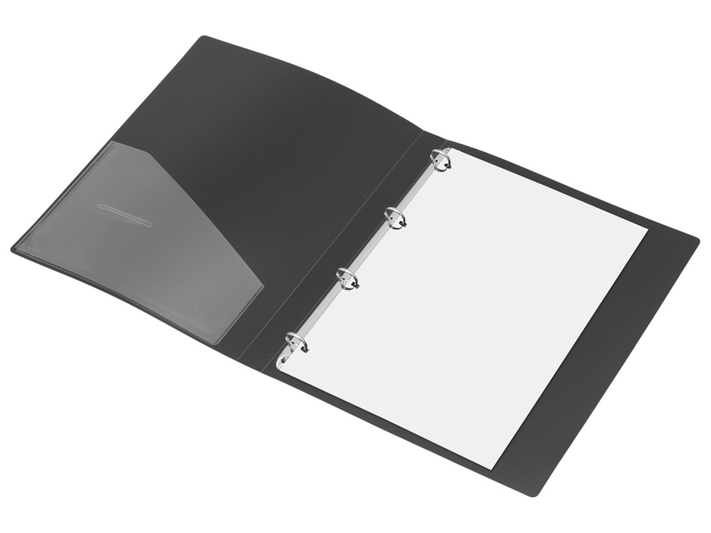 Папка на 4 кольцах — практичное решение для хранения документов. Она очень удобна в использовании: 4 кольца надежно фиксируют листы или файлы, при этом позволяя их легко менять. Прозрачный кармашек внутри идеально подходит для того, чтобы держать под рукой важные для офисной жизни мелочи: будь то визитки, флешки, стикеры или другие небольшие предметы, которые часто теряются в общих отделениях. -