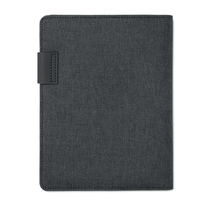 Папка формата А5 с аккумулятором ёмкостью 4000 мАч, подставкой для телефона или планшета, отделениями для ручек и карточек. Каждый лист разлинован и имеет календарь. Покрытие софт тач внутри, снаружи непромокаемый полиэстер. -