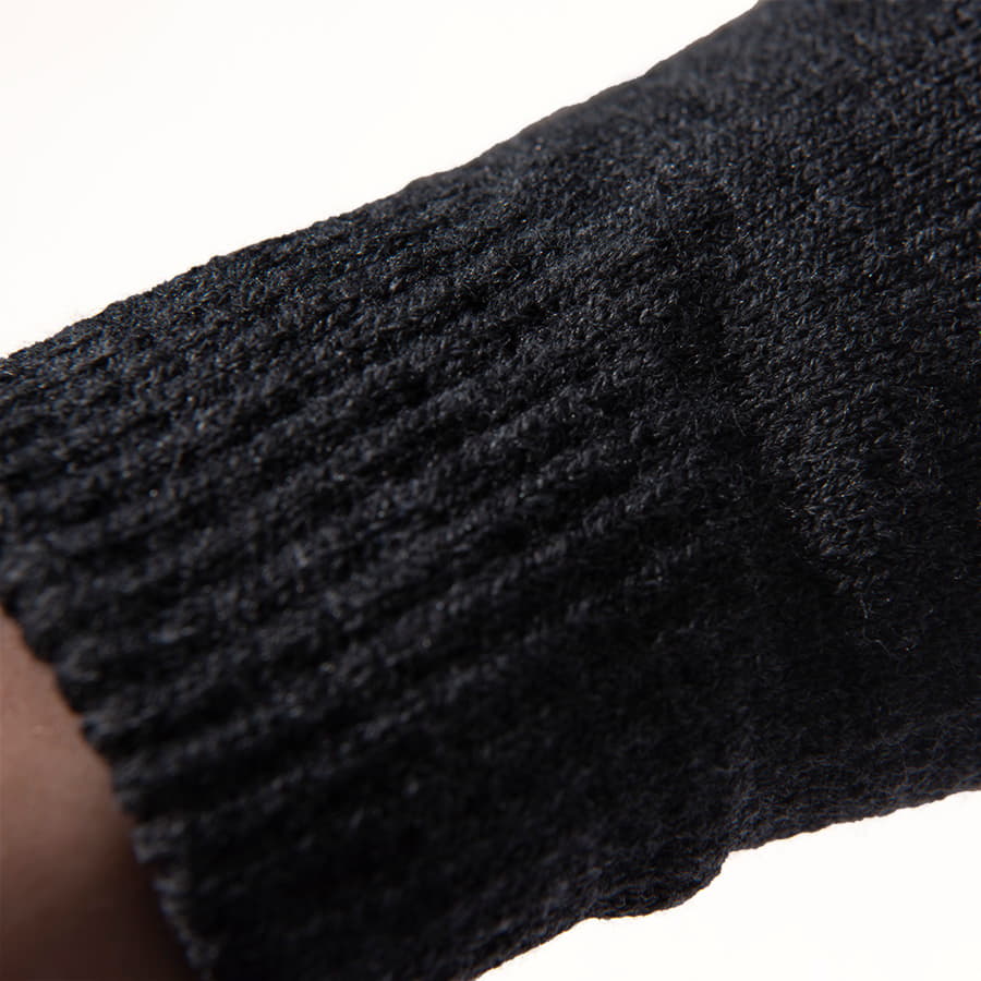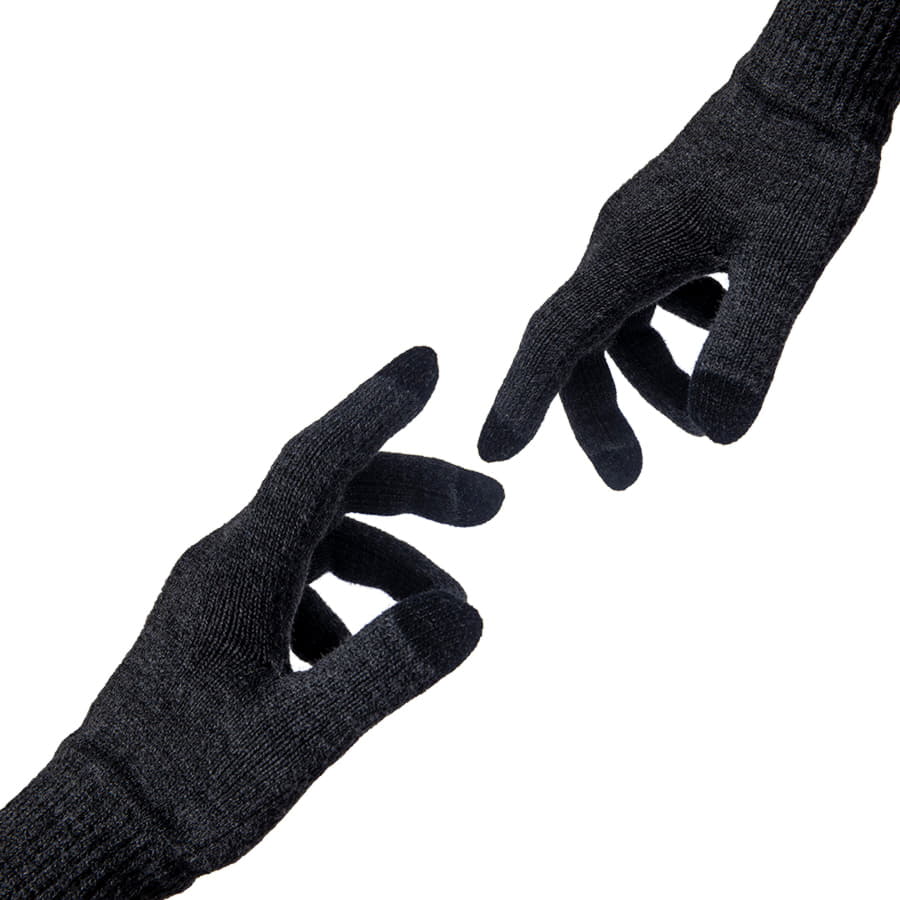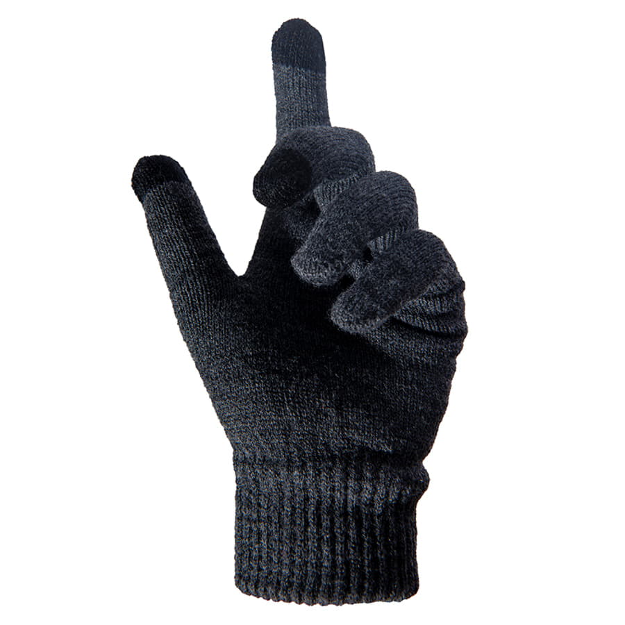 Перчатки из теплого и мягкого акрила с сенсорными наконечниками. Основной цвет: темно-серый меланж. Цвет сенсорных вставок: черный. Цвет, близкий к Pantone Cool Grey 11C. -
