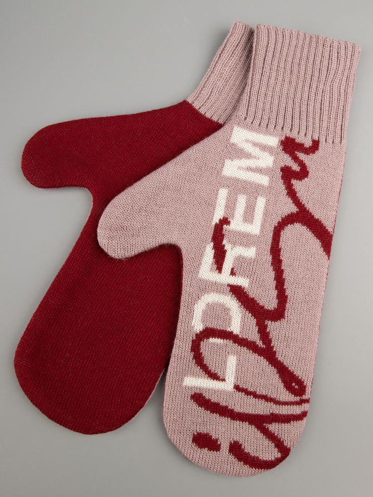 Варежки с вывязанным логотипом и индивидуальным рисунком в фирменной цветовой гамме.