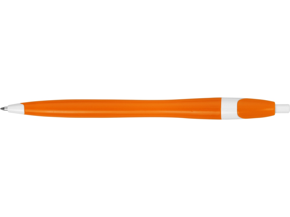Простая, но стильная пластиковая ручка с цветным корпусом и белыми вставками на носике, кнопке и под клипом. Белые вставки делают ручку более заметной, не отвлекая от рекламной информации на ее корпусе. -