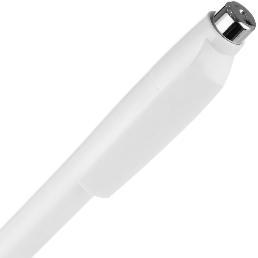Пластиковая ручка с глянцевым корпусом и хромированными деталями. Большой клип идеален для нанесения логотипа компании.- Механизм ручки: нажимной.