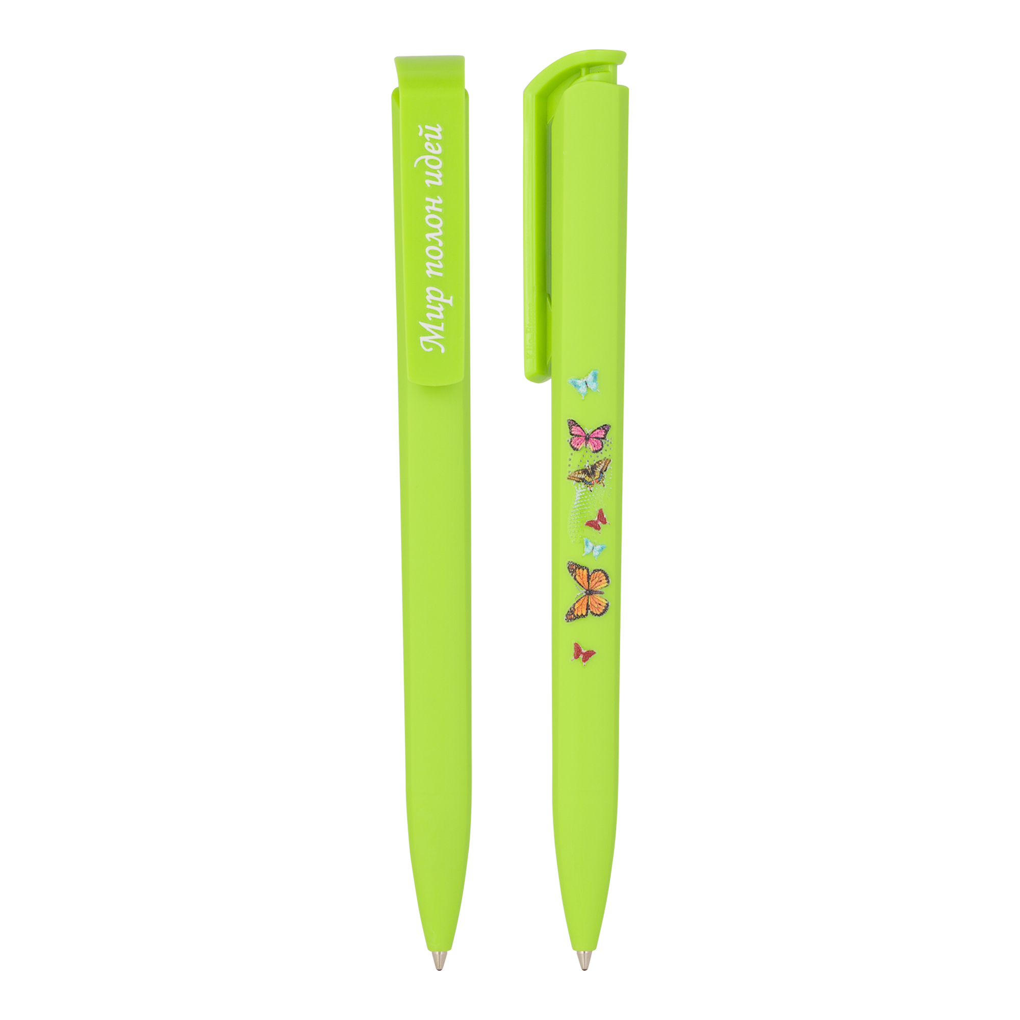 Необычная шестигранная ручка удобно ложится в руку. Корпус с напылением soft touch дополнен глянцевым клипом. Плоские грани корпуса и массивный глянцевый клип превосходно дополнит нанесение тампопечатью и объемной УФ-печатью.