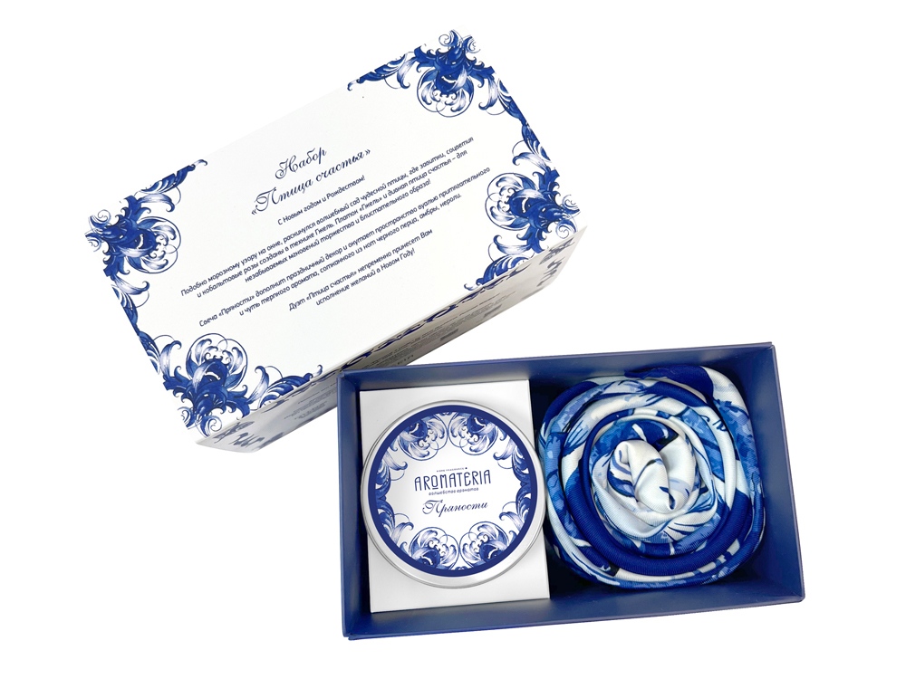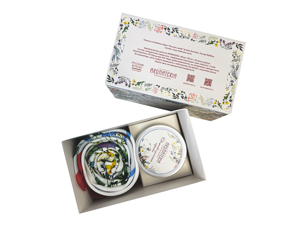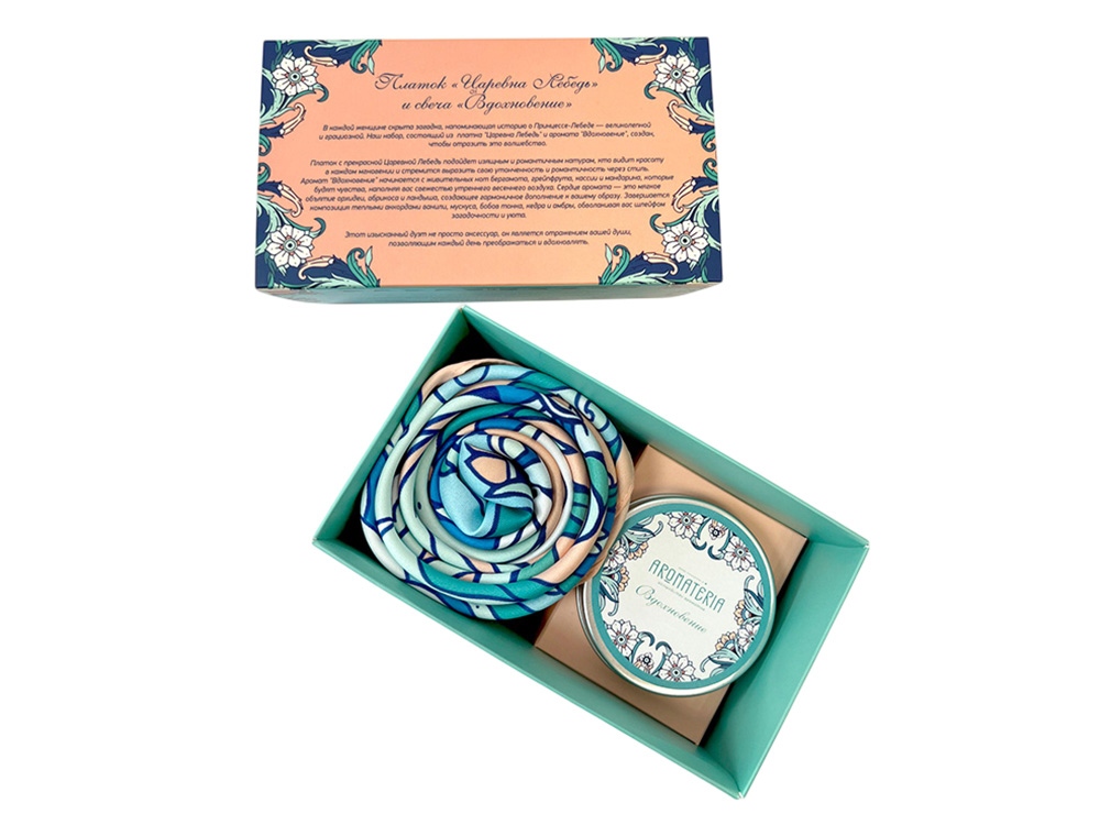 платок- 70% искусственный шёлк, 30% вискоза, свеча- алюминий/натуральный соевый воск, парфюмерная композиция
