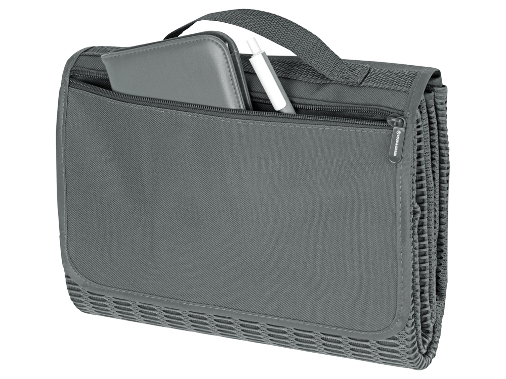 С нашим пледом любой поход или пикник на природе станет комфортным удовольствием. Наружный слой имеет мягкую сетчатую текстуру и выполнен по инновационной технологии 3D Air Mesh Sandwich, делающей поверхность пледа дышащей, что особенно важно во время отдыха на природе. Непромокаемая подкладка гарантирует удобство при использовании на влажной поверхности. Карман на молнии специально разработан для гаджетов и других мелочей. Ручка для переноски обеспечивает дополнительный комфорт при транспортировке пледа. -