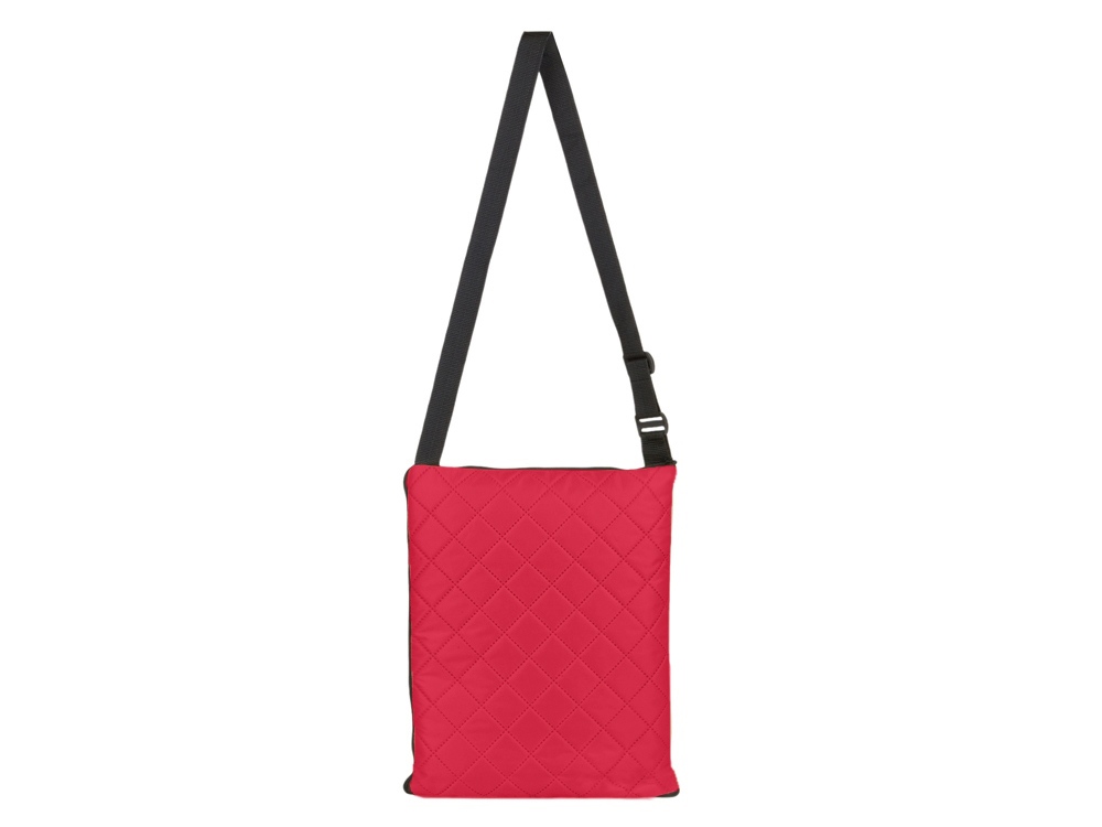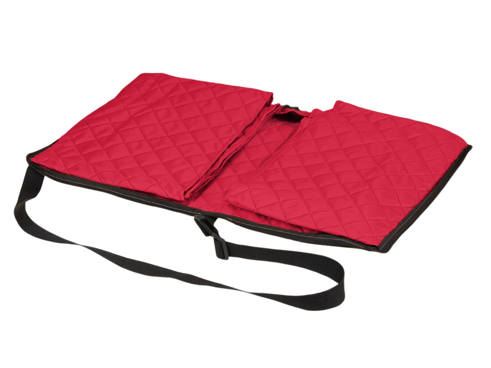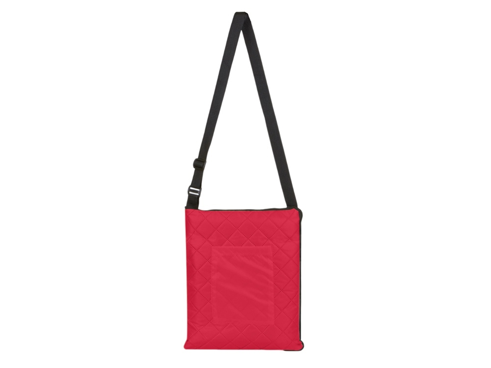 Двухсторонний плед с водоотталкивающим покрытием с одной стороны и мягким флисом с другой. Складывается в сумку на плечо и фиксируется с помощью молнии. В собранном виде имеет регулируемый по длине ремень для переноски и наружный карман для мелочей. -