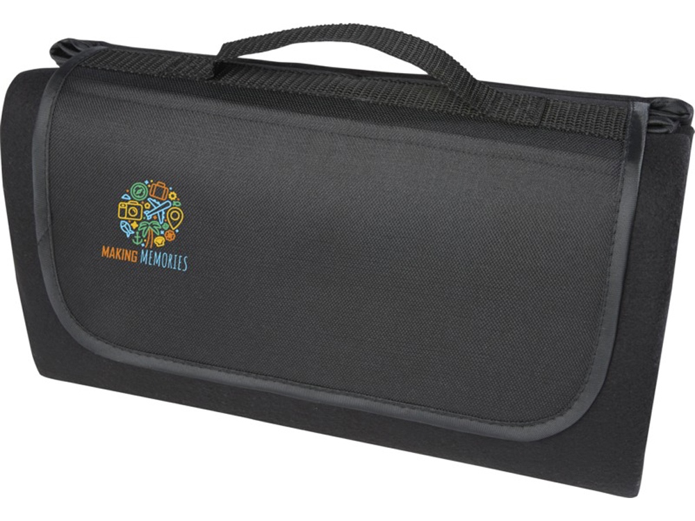 Водонепроницаемое покрывало для пикника плотностью 140 г/м2, изготовленное из переработанного PET-пластика, что делает его экологичным решением. Сложенное и закрепленное одеяло легко хранить и переносить благодаря имеющейся ручке.
