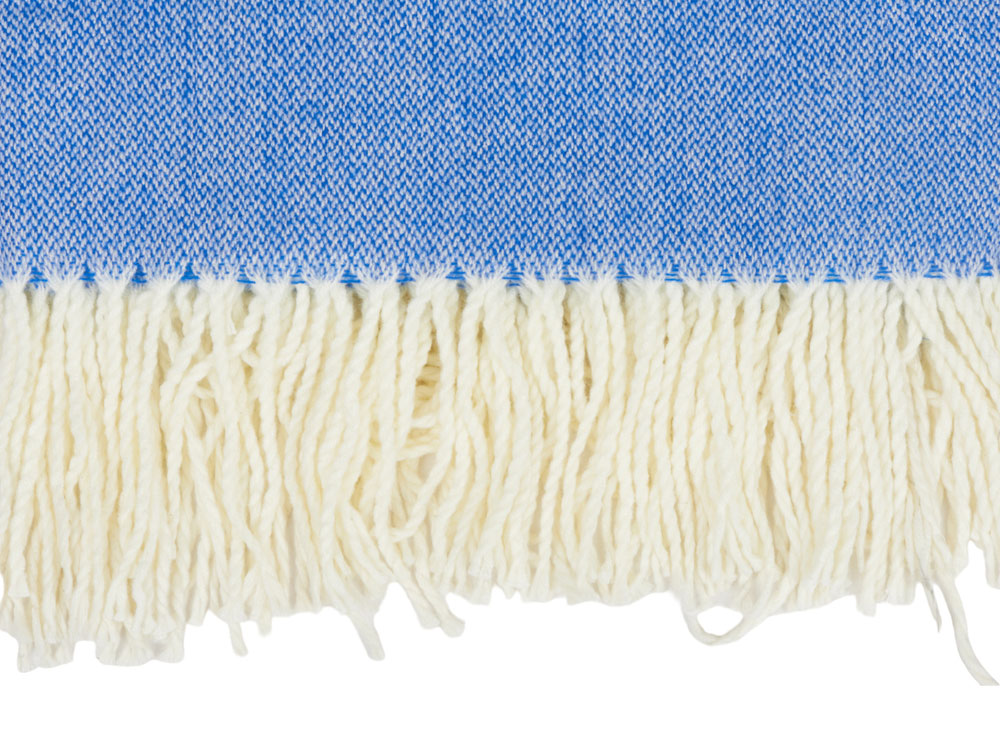 Большой размер этого мягкого плотного пледа позволяет использовать его как одеяло и как покрывало для вашего интерьера. По бокам плед украшен бахромой. В комплекте идет упаковочная синяя лента, на которой можно сделать нанесение вашего логотипа. -