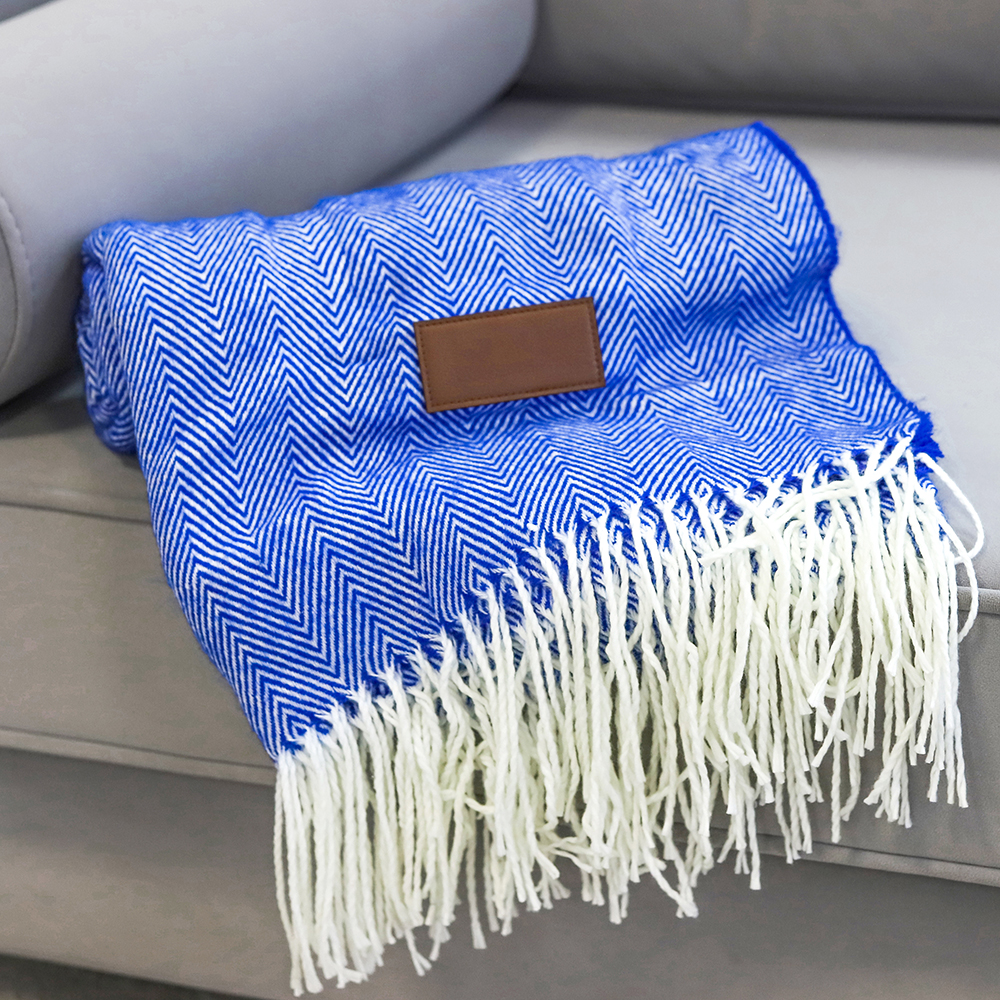 Плед SAMUM изготовлен из высококачественной акриловой пряжи, что позовляет добиться мягкости и тепла как от натуральной шерсти. Благодаря составу плед легкий, хорошо сохраняет теплоизолирующие свойства и надолго радует внешним видом. Также гипоаллергенен, не накапливает статическое электричество и легко стирается. Плед имеет классический узор “елочка”, с бахромой по краям. Для нанесения логотипа предусмотрена нашивка из кожзама (8 x 4 см). Плед упакован в пластиковый пакет, сложен в виде рулона с текстильным держателем.- Виды нанесений: Термотрансфер DTF, Гравировка А3, Вышивка, Шелкотрансфер