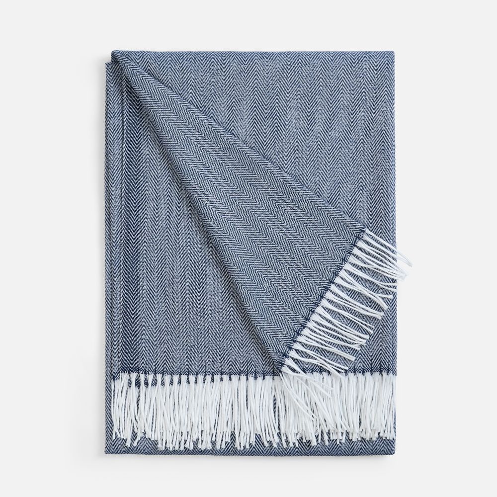 Классический рисунок «елочка» не слишком привлекает внимание, но в то же время добавляет изюминки. Смешанный состав пряжи продлевает срок службы и существенно облегчает уход за пледом.