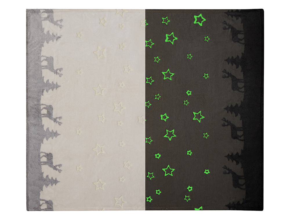 Размер 130х150 см, мягкий приятный на ощупь флис, новогодний принт светится в темноте, создаст уютную обстановку дома, подойдет под любой интерьер, согреет в прохладную погоду. -